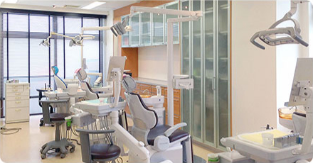 オープンタイプでの診療室で、広い空間で明るい雰囲気です。 パーティションご希望の方はご遠慮なくスタッフまでどうぞ。