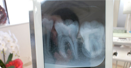 撮影したレントゲン写真を手元のiPadに表示して、治療内容を説明します。